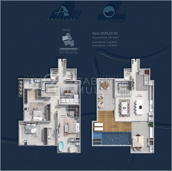 • DUPLEX Tipo 3 | 257.78m² | 03 Suítes + 05 Banheiros + Terraço + Piscina + Living