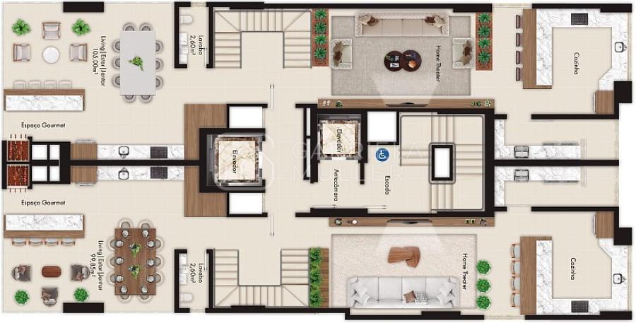 • DUPLEX 260.00m² | 04 Suítes, 1 suíte master c/ Hidro e Closet + Espaço Gormet c/Churrasqueira + Living + Estar íntimo + Lavabo