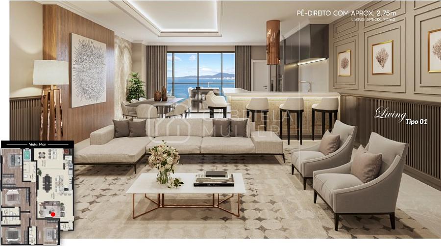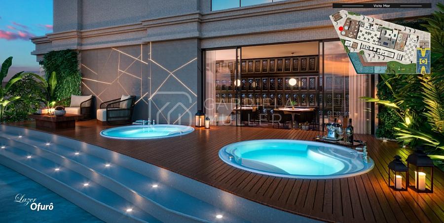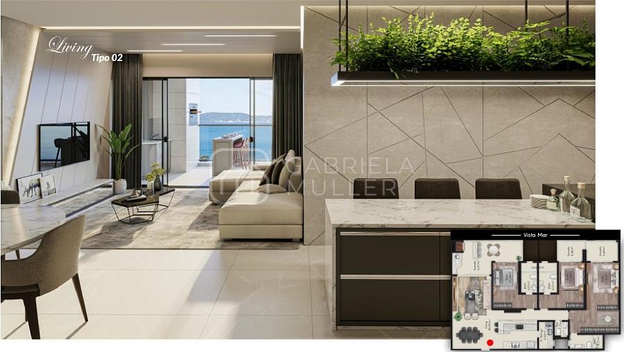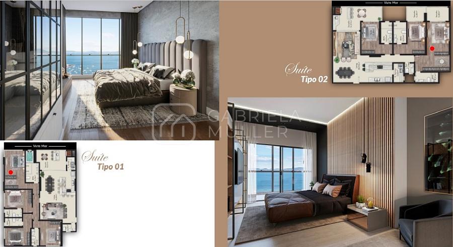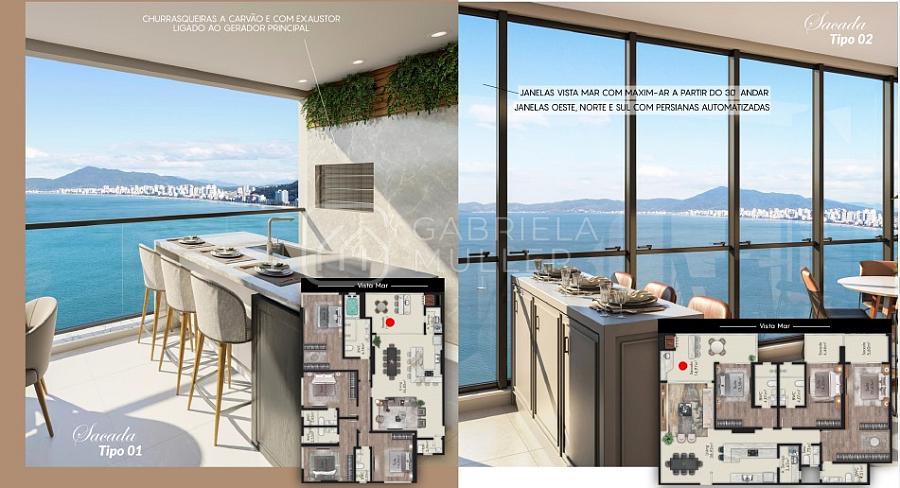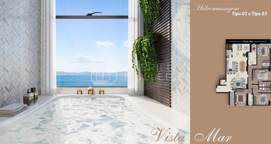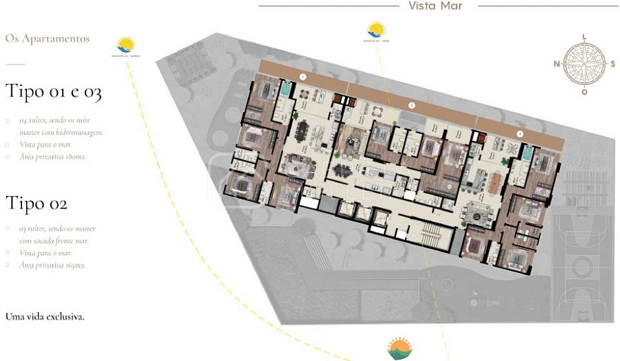 • Tipo 01 | 180.00m² | 04 Suítes, sendo uma Master c/Hidro vista Mar + Sacada c/Churrasqueira + Living + Lavabo + Área de Serviço