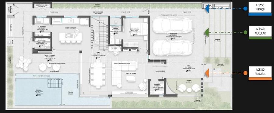 • Área Contruida | 271.00m² | 04 Suítes + 02 Vagas de Garagem + Piscina Privativa Adulta/Infantil c/Prainha + Living + 02 Lavabo + Jardim + Área Gormet c/Churrasqueira + Copa + Área de Serviço + Estendal + Depósito + Casa de Máquinas